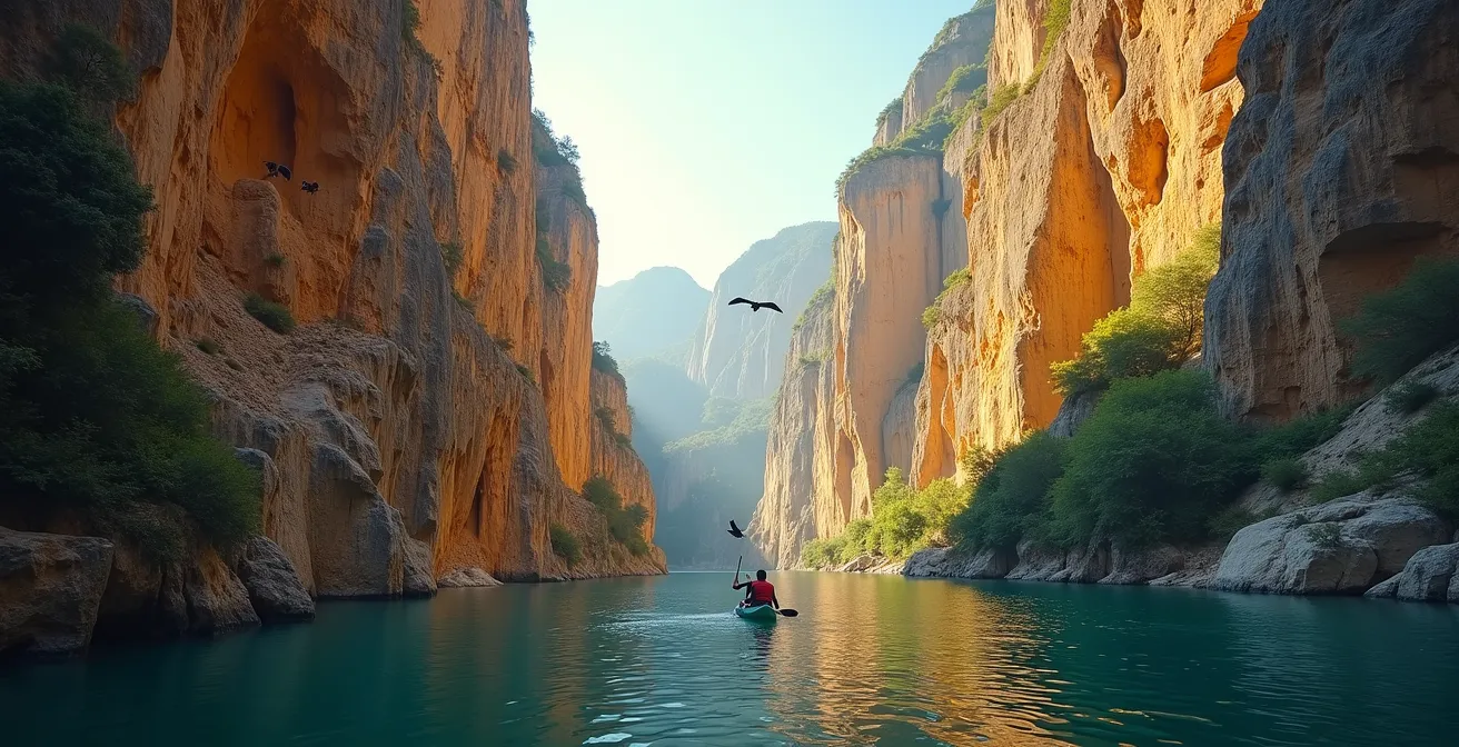 Pour maximiser vos chances de les voir, la stratégie est double. À pied, le sentier du ravin de Cassagnes vous mène en 45 minutes à des points d’observation exceptionnels. En canoë, concentrez votre attention sur les falaises de la Jonte, où les colonies principales nichent. Quelle que soit votre approche, la règle d’or est le respect : gardez une distance d’au moins 150 mètres avec les nids pour ne pas déranger ces majestueux planeurs.
